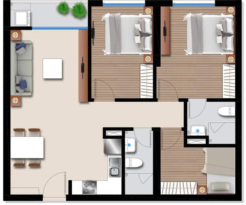 - Diện tích căn hộ An Gia Riverside: từ 51m2 - 115m2, 2-3 phòng ngủ