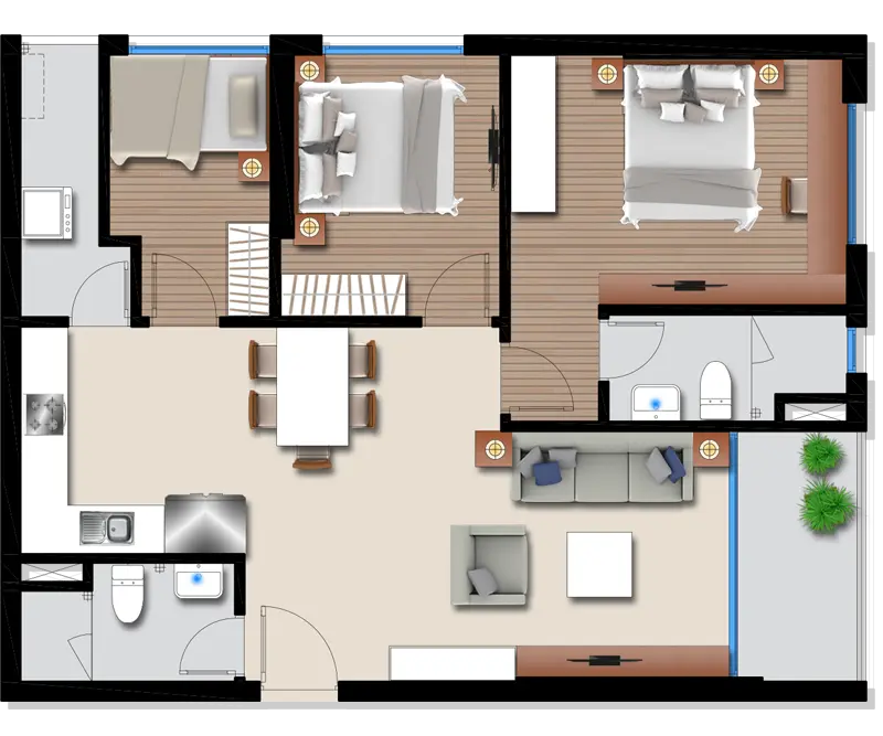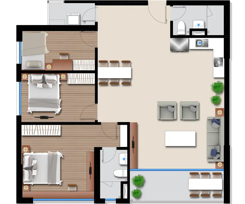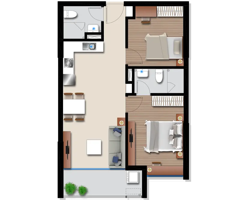 - Diện tích 69m2: 2 phòng ngủ, 2WC [căn số 05, 06, 07, 08]