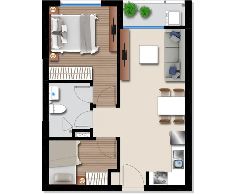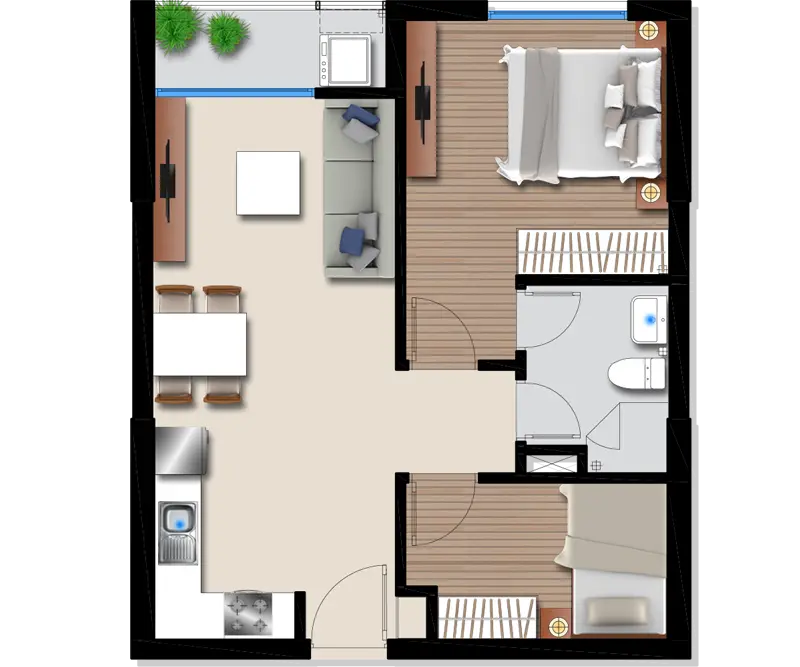 - Diện tích 56m2: 2 phòng ngủ, 1WC [căn số 11]