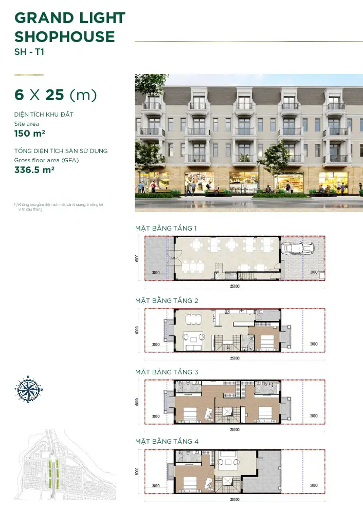 - Grand Light Shophouse: 6×17.5m2 và 6×19.5m2