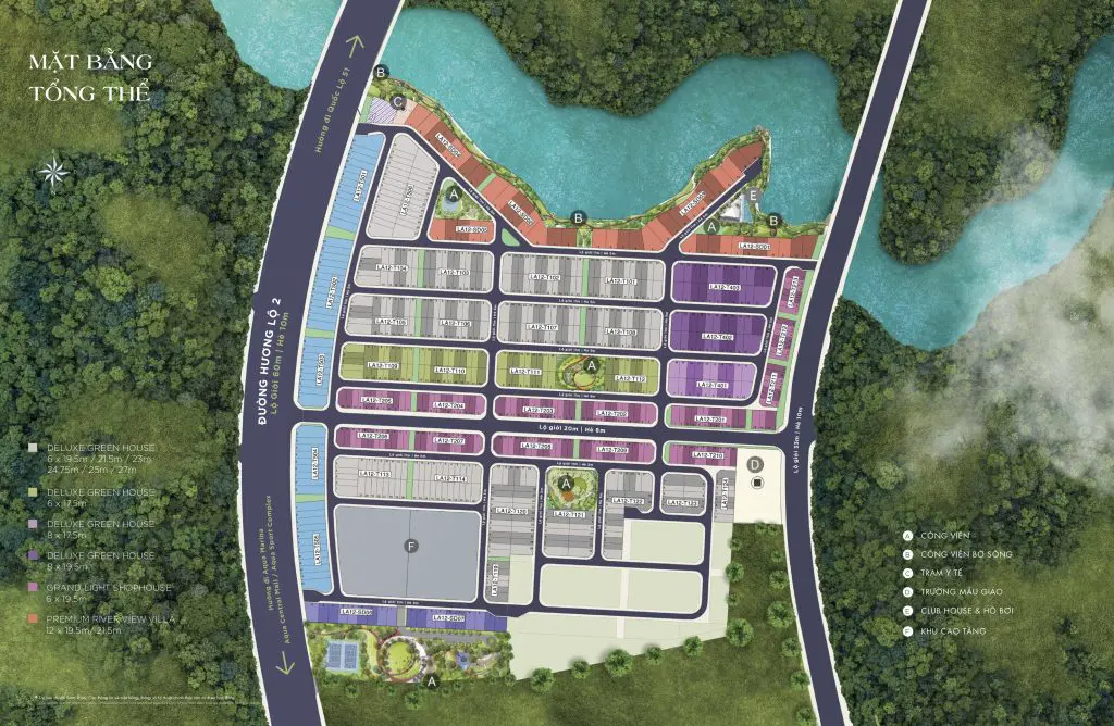 - Sản phẩm: Shophouse, nhà phố, biệt thự song lập, biệt thự đơn lập, biệt thự view sông