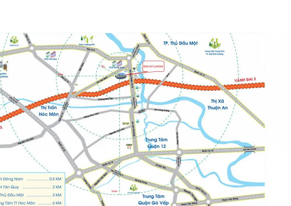Bình Mỹ Garden nằm tiếp giáp với huyện Hóc Môn, quận 12, quận Gò Vấp qua trục đường Lê Văn Khương nối dài nên cư dân cũng sẽ dễ dàng tiếp cận với những tiện ích gần kề.