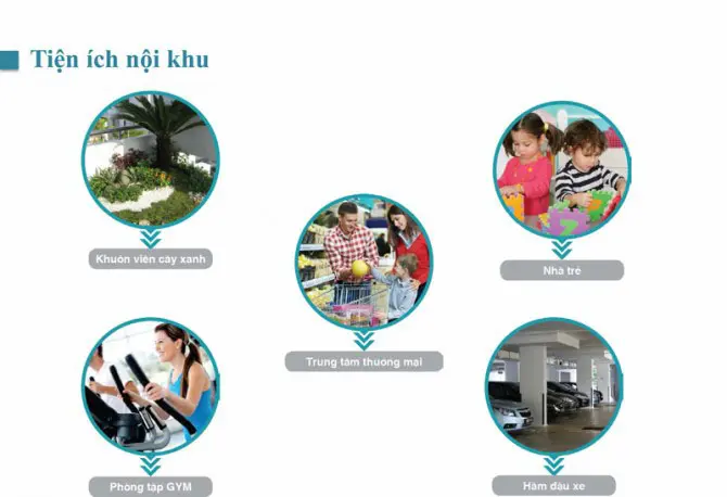 Nhà trẻ, khu mua sắm gồm tầng trệt và tầng lững, phòng tập thể dục, khu viên chung cư có công viên cây xanh, hồ nước. Khu vui chơi giải trí cho trẻ em... rộng rãi, sạch đẹp và thoáng mát.
