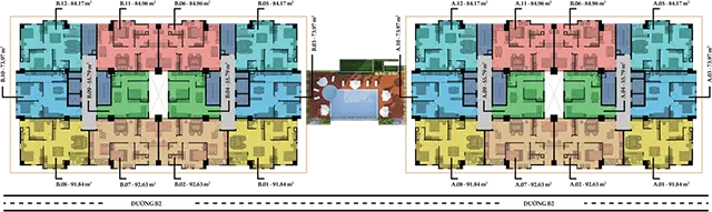 Hơn nữa, với công viên giữa 2 block đáp ứng nhu cầu thể dục thể thao và thư giãn hóng mát của các hộ dân chung cư.