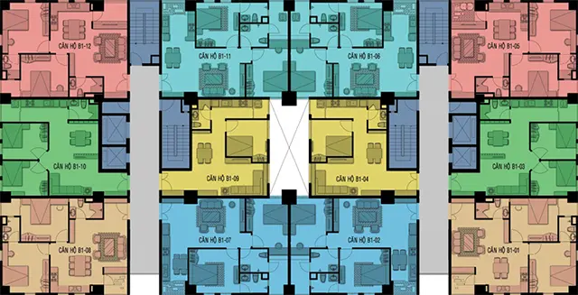 Căn hộ 12 View được thiết kế hài hòa và tiện ích, với diện tích căn hộ vừa và nhỏ từ 56-92 m2, rất phù hợp với mọi hoàn cảnh, nhưng vẫn thể hiện một sự khép kín và hiện đại.