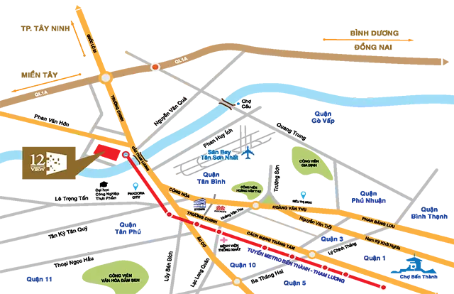 Chung cư 12 View tọa lạc tại số 152 Phan Văn Hớn, phường Tân Thới Nhất, quận 12, TpHCM, phía Bắc là đường 60m, phía Đông đường 30m, kết nối giao thông với dự án tài điện ngầm Tham Lương - Bến Thành.