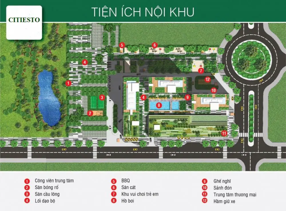 Dự án Citi Esto được sử dụng nhiều khoảng không để xây dựng tiện ích nội khu. Hệ thống tiện ích tại đây được ví như một khu nghỉ dưỡng 5 sao nằm ngay tại chung cư. Trung tâm thương mại nhiều tiện ích với rạp chiếu phim, khu ẩm thực, khu mua sắm. Sân chơi chung và công viên nội khu với nhiều khoảng không như hồ bơi, bóng rổ, khu chơi cầu lông, sân tập thể dục, sân đi bộ, khu nướng BBQ...