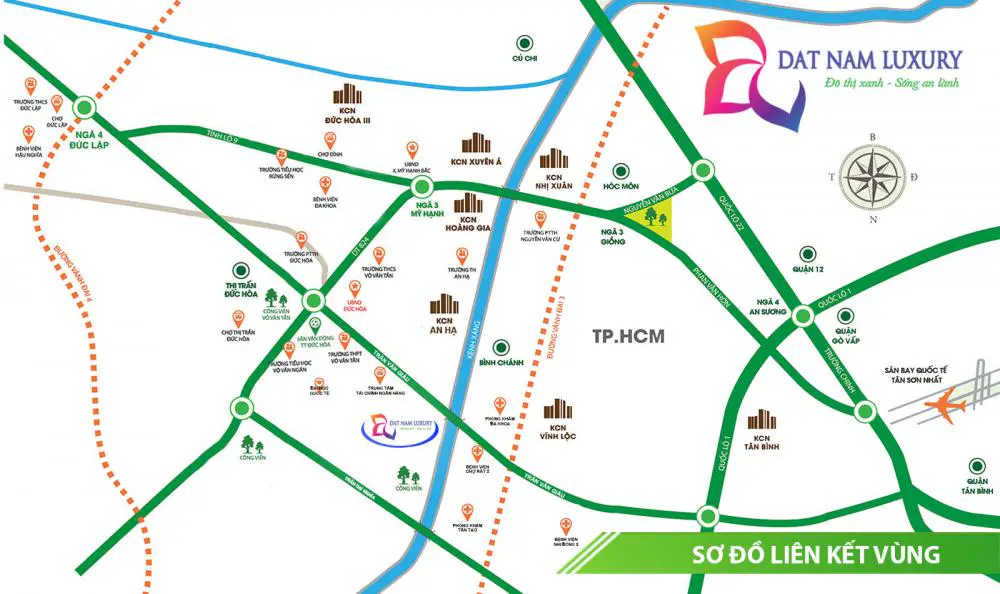 Dự án Đất Nam Luxrury được Tập Đoàn Đất Nam đầu tư với quy mô lên tới 100.1ha nằm trong khu vực được bao bọc bởi 2 dòng sông An Hạ và Kênh Xáng, thuộc địa phận huyện Bình Chánh, Tp.HCM - tạo nên một không gian sống thơ mộng, trong lành, gần gũi với thiên nhiên.