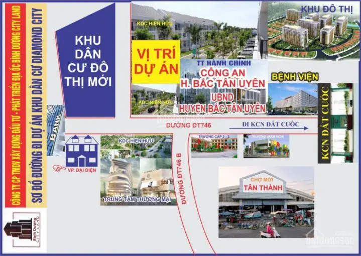 Khu đô thị Diamond City Bình Dương do Công ty địa ốc Bình Dương City Land làm chủ đầu tư, phát triển trên khu đất quy hoạch rộng khoảng 5ha tại huyện Tân Uyên, tỉnh Bình Dương. Dự án sau khi hoàn thành sẽ cung cấp cho thị trường địa ốc khu vực trên 200 sản phẩm đất nền, nhà phố diện tích đa dạng từ 90m2 đến 200m2, pháp lý minh bạch, cho phép xây dựng tự do.