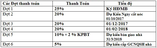 - Thời gian bàn giao dự kiến: 31/03/2018