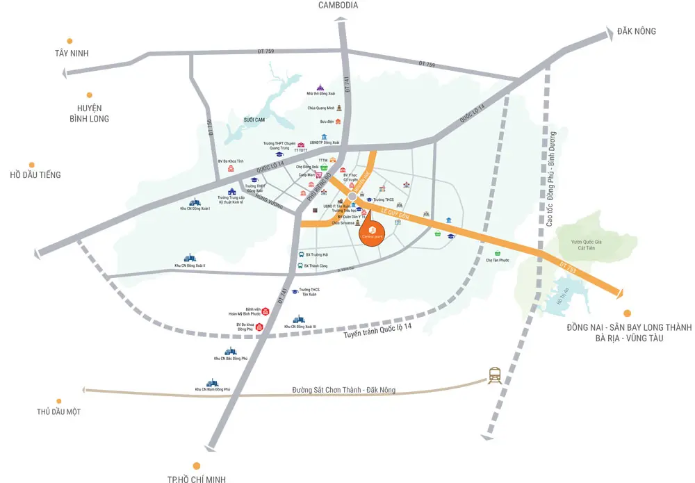 - Vị trí: đường DT753, phường Tân Xuân, TP. Đồng Xoài, Bình Phước
