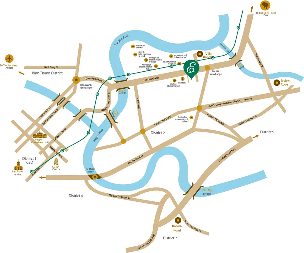 - Hệ thống Trường Quốc tế Úc, Trường Quốc tế Anh và ISHCMC: 5km.