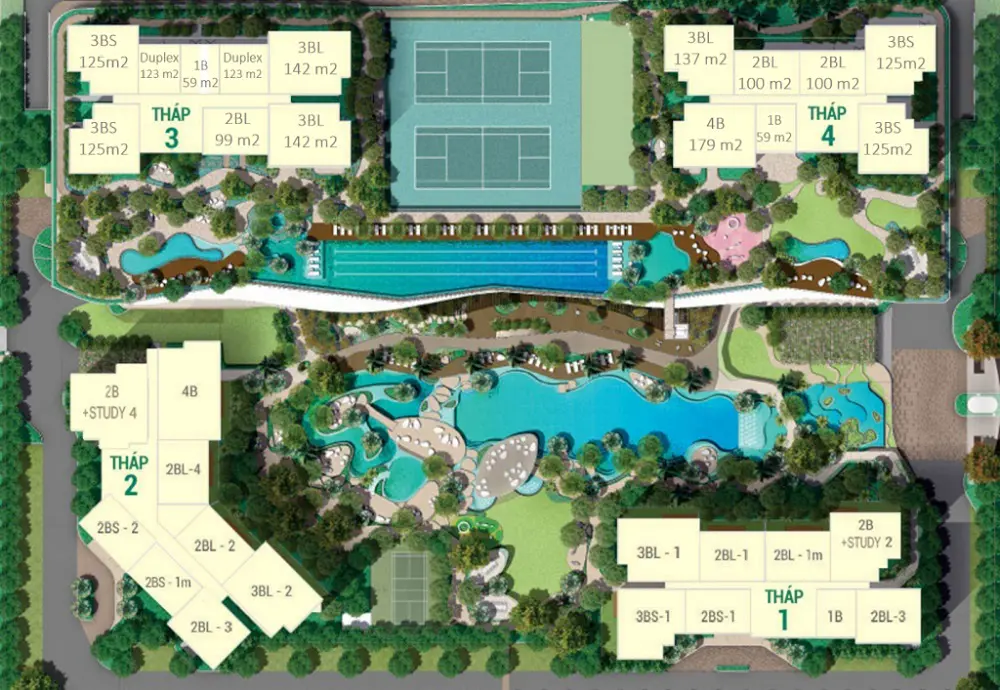 4 tòa tháp của dự án được bố trí thông minh và thông thoáng. Cụ thể, 4 tòa ở vị trí 4 góc, còn phần diện tích ở giữa dành cho hệ thống tiện ích, bao gồm hồ bơi, công viên nội khu và các tiện ích khác. Tất cả tạo nên một tổng thể cân bằng và hài hòa.