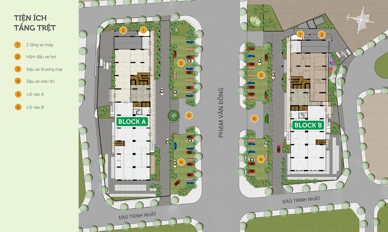 - Quy mô: 2 tòa tháp 18 tầng, 4 tầng khối đế thương mại