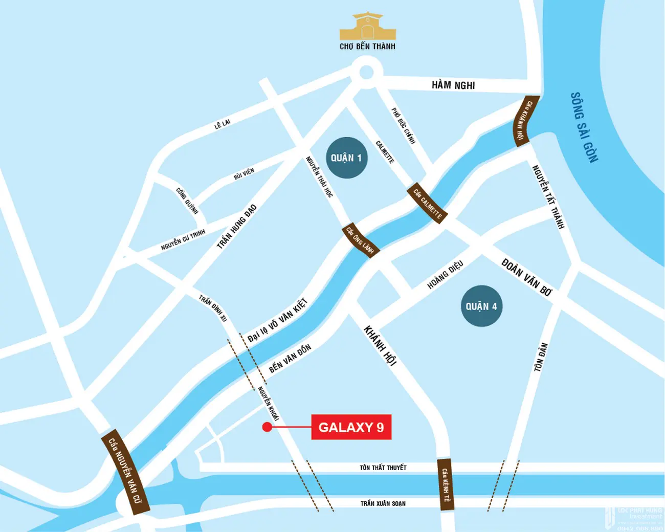 Dự án căn hộ Galaxy 9 nằm ở mặt tiền số 9 đường Nguyễn Khoái, Quận 4, TP.HCM. Đây được coi là vị trí đắc địa khi nằm cạnh bến Vân Đồn, đại lộ Võ Văn Kiệt - trục giao thông huyết mạch của quận 4. Đồng thời, từ đây cư dân dễ dàng kết nối đến khu vực trung tâm như quận 1, quận 2, quận 5, quận 7, quận 8 và khu vực lân cận nhờ hệ thống cầu đường như cầu Calmet, cầu Kênh Tẻ, cầu Ông Lãnh, cầu Nguyễn Văn Cừ, cầu Khánh Hội…