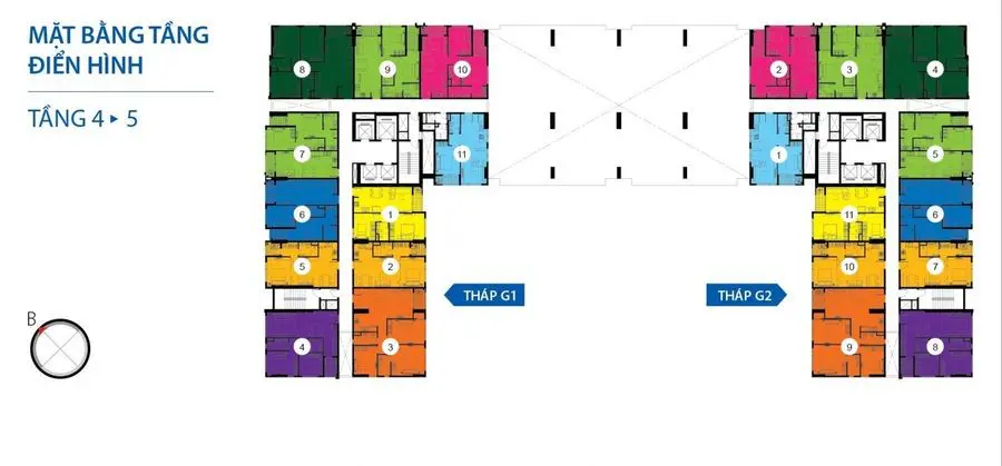 - Căn hộ 2PN diện tích từ 65 - 72m2 giá bán từ 3,6 - 3,8 tỷ đồng.
