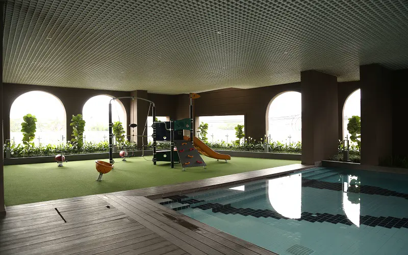 - Tầng 2 gồm hồ bơi tràn bờ, phòng gym, khu café, sauna, phòng sinh hoạt cộng đồng, chăm sóc sắc đẹp