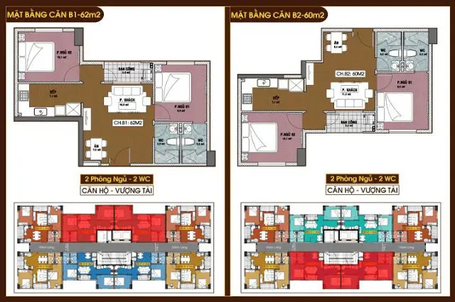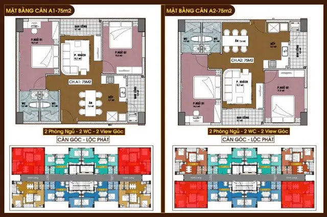 Các căn hộ được thiết kế với diện tích từ phong phú từ 60-75m rất phù hợp với gia đình trẻ.