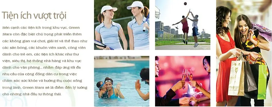 Chung cư Green Stars nằm gần các trường đại học lớn như Đại học Thương mại, Đại học quốc gia, Đại học Điện lực, Đại học Sư phạm Hà Nội, Cao đẳng du lịch, Học viện Tài chính, Học viện Cảnh sát… Ngoài ra, dự án chung cư Green Stars cũng gần các cơ quan hành chính lớn như Bộ Ngoại giao, Bộ Nội vụ, Bộ Công An, gần các siêu thị, trung tâm thương mại lớn như Metro, Vincom, gần khu đô thị lớn như Ciputra, Vinhomes Gardenia, Nam Cường…