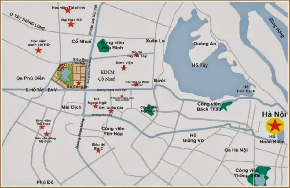 Trong vòng bán kính 2km từ dự án có rất nhiều tiện ích công cộng như bến xe Mỹ Đình, cầu Thăng Long, cầu Nhật Tân, công viên Hòa Bình…