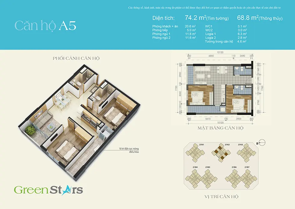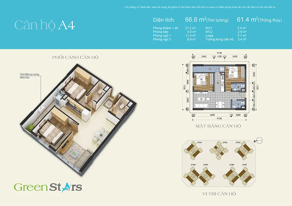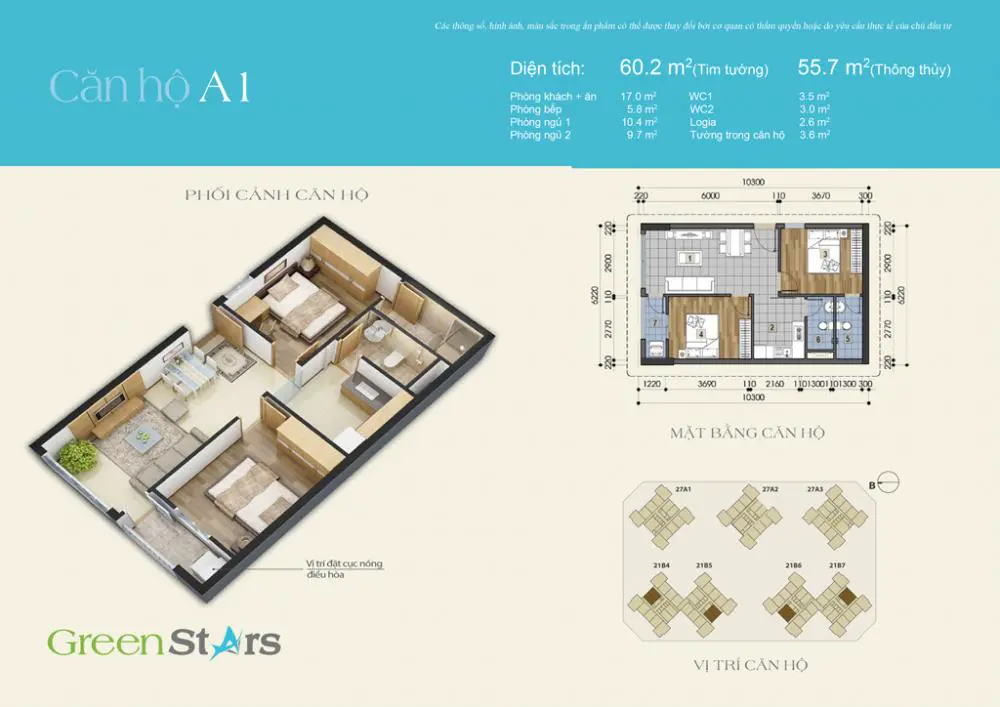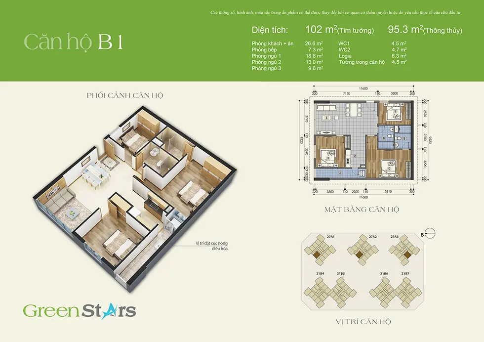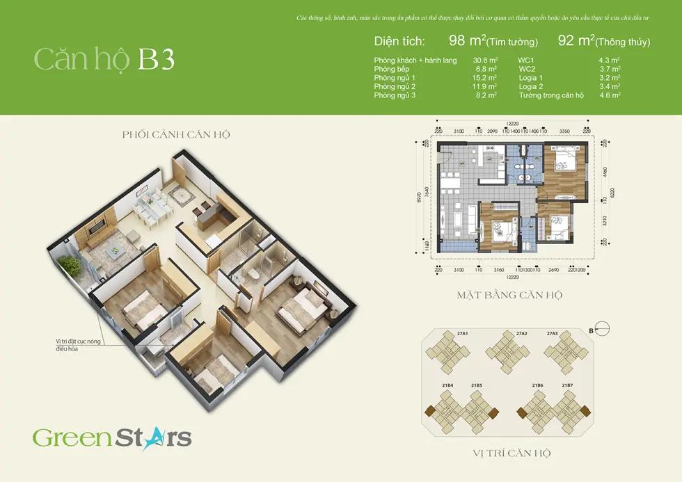 Các căn hộ thuộc chung cư Green Stars được thiết kế thông minh với lối kiến trúc hiện đại, sử dụng nội thất sang trọng với ý tưởng kết hợp phong cách hiện đại với văn hóa đậm chất Á Đông. Các phòng ngủ trong các căn hộ của dự án đều được thiết kế thông thoáng, tối ưu hóa ánh sáng tự nhiên.