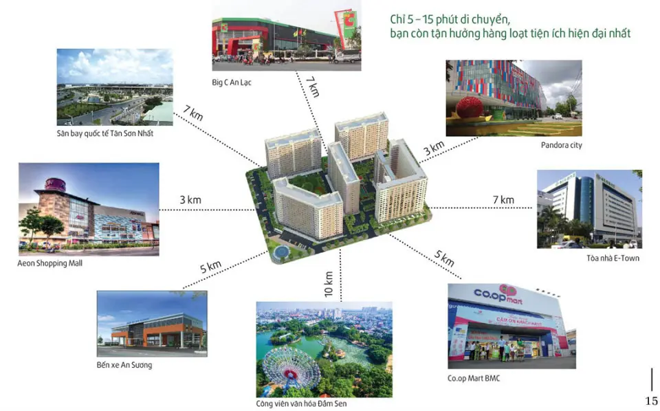Từ căn hộ Green Town Bình Tân, cư dân có thể di chuyển nhanh chóng đến Quận 5, quận 6, Tân Bình, Gò Vấp, quận 12, Củ Chi cũng như tới những khu vực đang phát triển như Long An, Đồng Nai, Bình Dương và Tây Ninh.