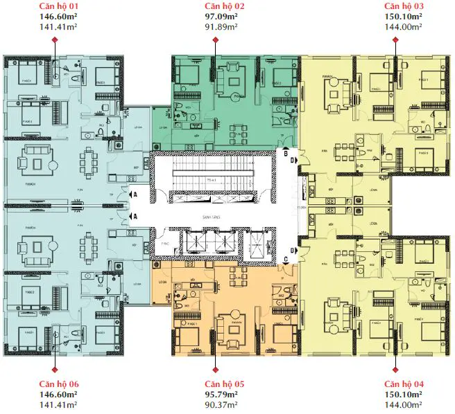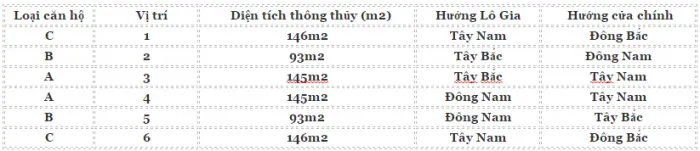 Mặt bằng thiết kế các căn hộ