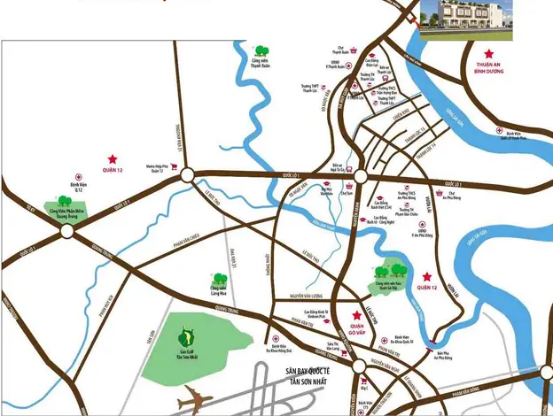 Bên cạnh đó, Happy Town Thạnh Lộc cách sông Sài Gòn không xa nên đón được những luồng gió mát mang hương vị phù sa thiên nhiên. Không gian ở đây rất thanh bình, mát mẻ và thoáng đãng mà không nơi nào có được. Dự án Happy Town Thạnh Lộc không chỉ đơn thuần là nơi an cư mà còn là nơi khởi tạo cuộc sống mới, các giá trị đích thực mãi mãi trường tồn.