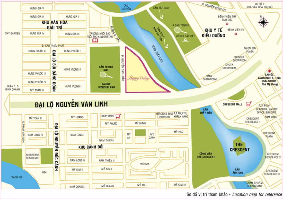 Happy Valley sở hữu vị trí đắt giá ngay trung tâm khu đô thị Phú Mỹ Hưng. Phía Đông nằm sát bên dòng sông thơ mộng và sân golf Nam Sài Gòn, phía Tây tiếp giáp với công viên Sài Gòn Wonderland còn phía Nam là đại lộ Nguyễn Văn Linh.