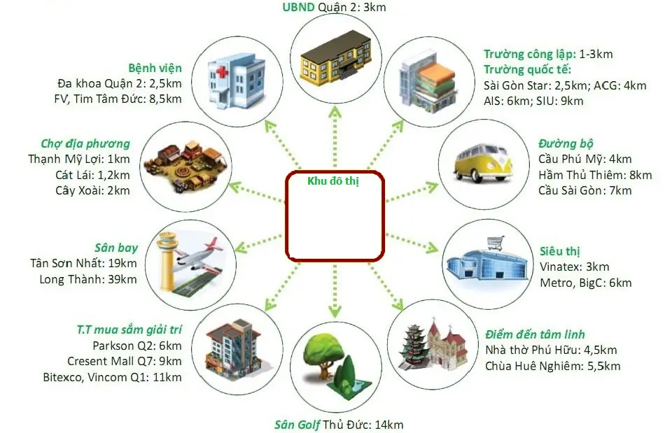 Nằm trên trục xa lộ Hà Nội, nơi vị trí đắc địa khu Đông Sài Gòn, dự án tạo nên dấu ấn đặc biệt chỉ cách cầu Sài Gòn 3.5km, từ dự án, chủ nhân có thể di chuyển đến tuyến Metro Bến Thành – Suối Tiên nhanh chóng, dễ dàng. Đặc biệt, kết nối đến trung tâm quận 1,2,3,9, quận Bình Thạnh và Phú Nhuận, khu vực công nghệ cao, khu vực sân bay chỉ trong vài chục phút, tránh được việc ngập nước hay kẹt xe.
