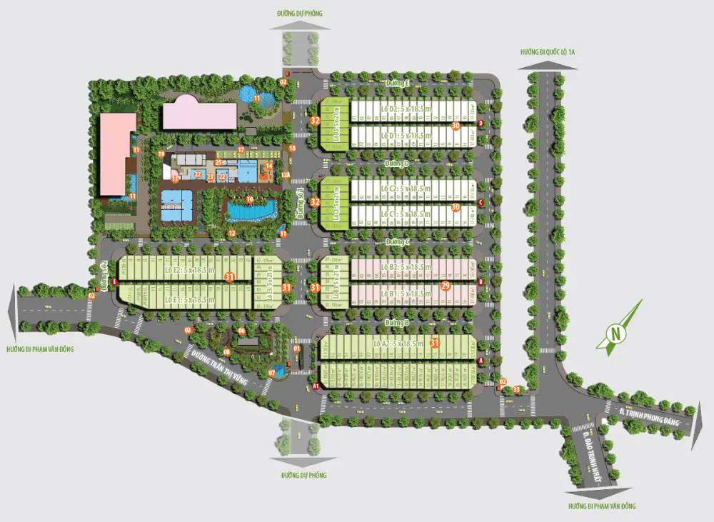 - Các lô mặt tiền Trần Thị vững thuộc dãy A1 và E1 hướng Đông Nam: 80m2 giá 2 tỷ - 92,5m2 giá 2,6 tỷ - 100m2 giá 2,7 tỷ