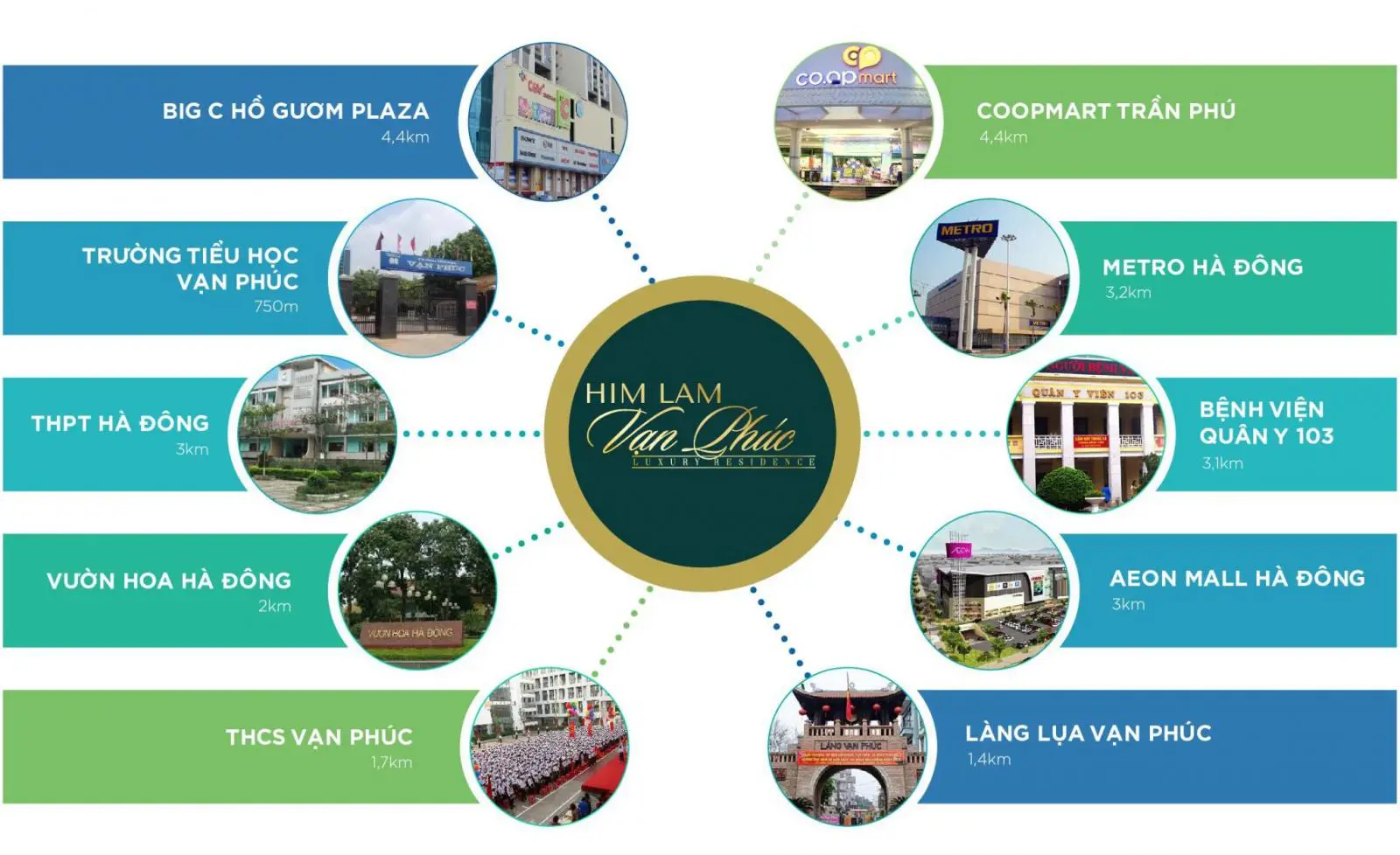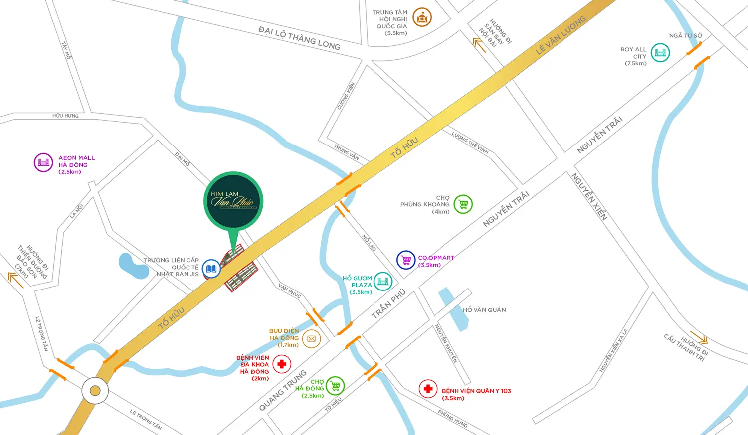 Từ vị trí Him Lam Vạn Phúc, cư dân có thể dễ dang di chuyển một cách thuận tiện tới: