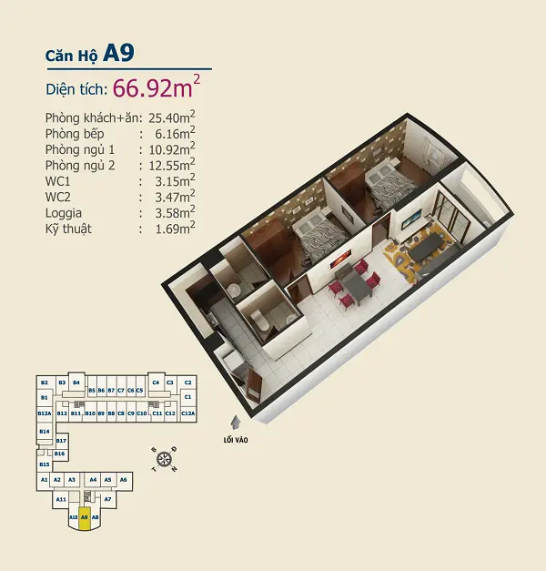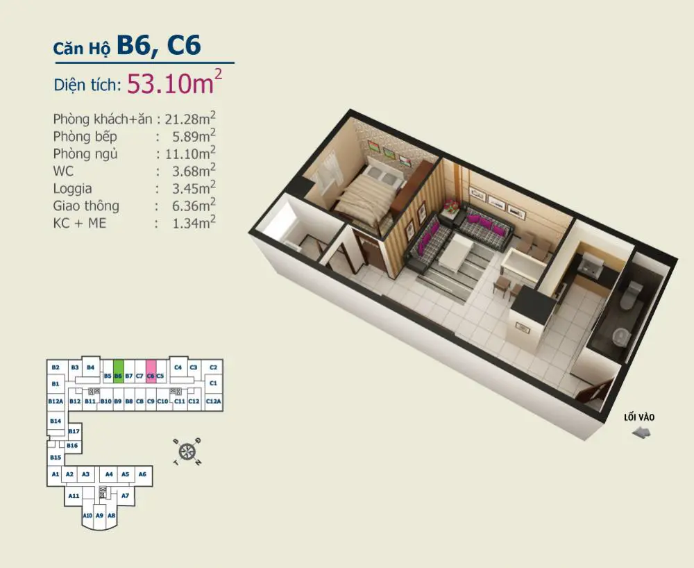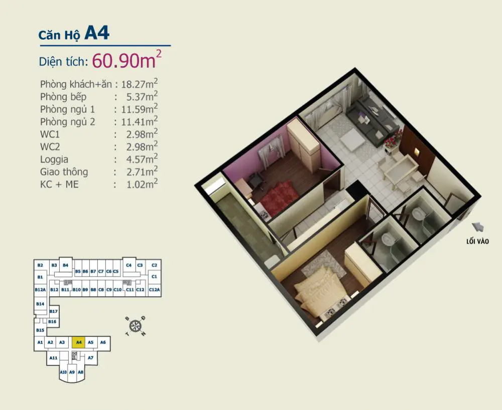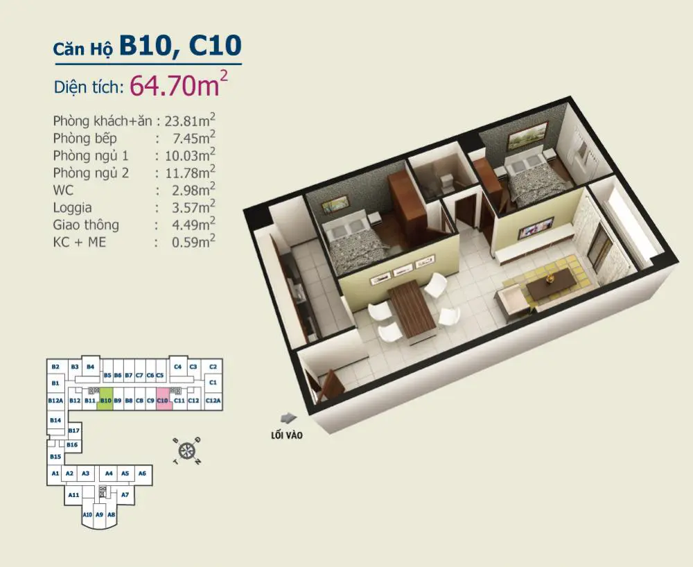- Diện tích căn hộ: 42.87m2 - 69.97m2