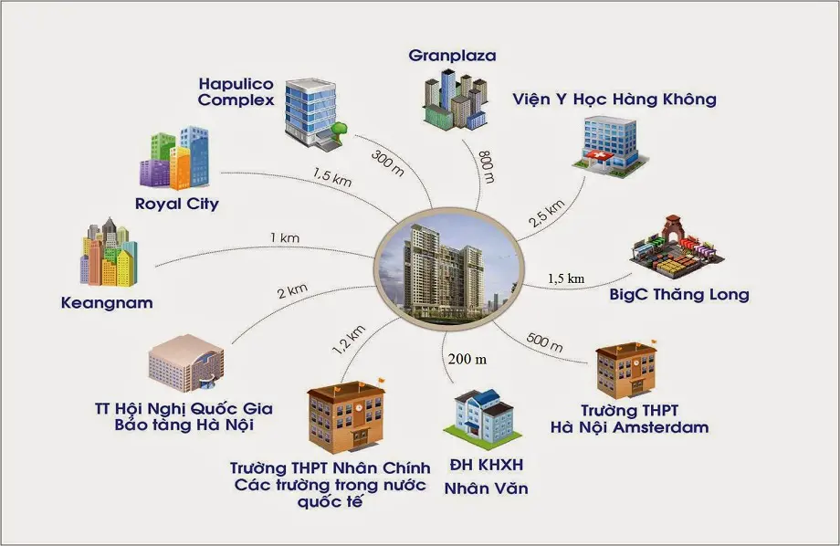 Dự án Imperia Garden gần các trung tâm thương mại lớn như: Royal City, Granplaza, BigC Thăng Longv.v...