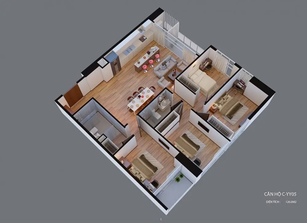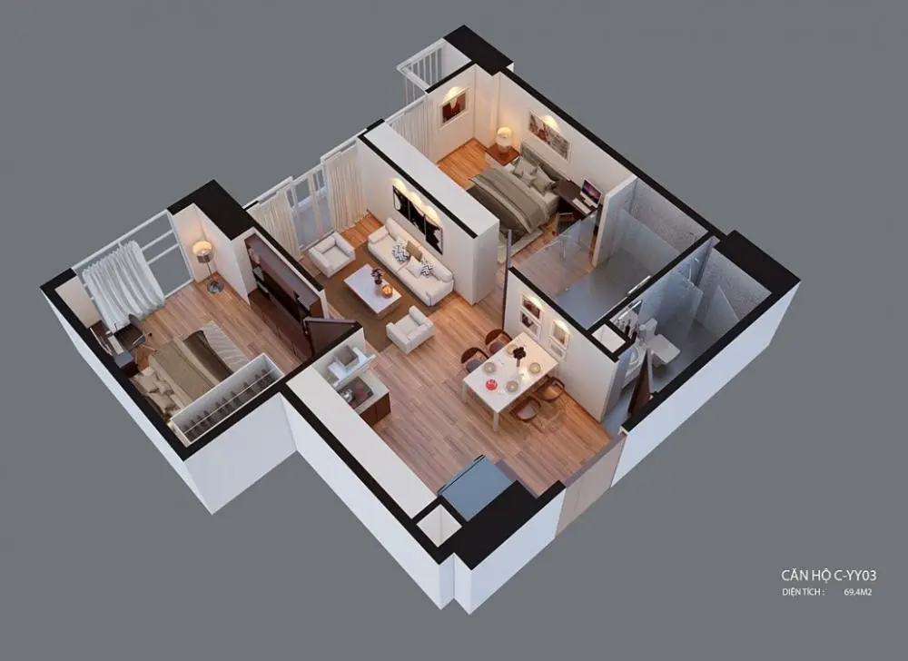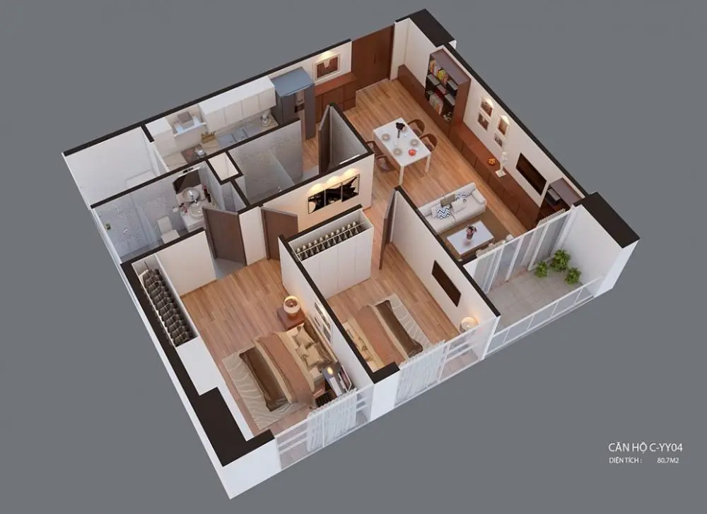 Mặt bằng thiết kế căn hộ 3D: