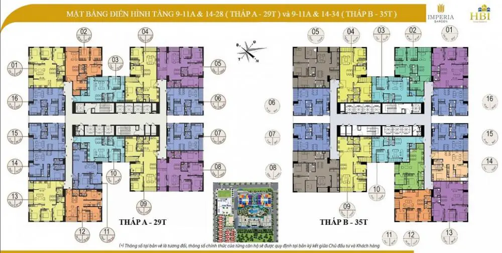 Khu A: Gồm 2 tòa tháp 29T và 35T (chung khối đế 7 tầng)