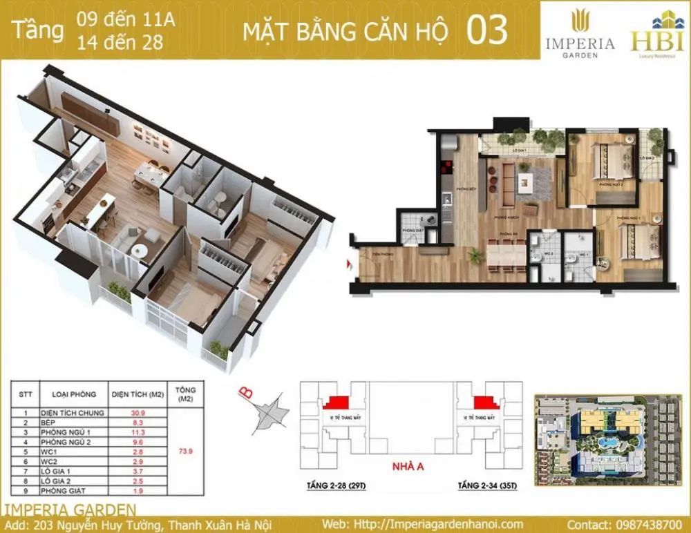 - Tầng 3-7: Căn hộ sân vườn