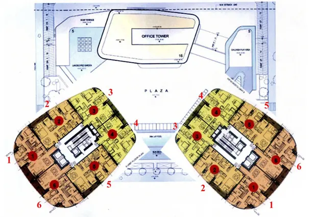 - 02 tòa tháp căn hộ có diện tích xây dựng 60.208m2 với 350 căn hộ cao cấp. Các căn hộ từ 70m2 đến 200m2, có tất cả 06 căn penthouses sang trọng với bể bơi riêng