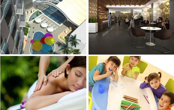 + Khu trung tâm thương mại, bể bơi, rạp chiếu phim, Spa, nhà hàng ẩm thực… phục vụ nhu cầu vui chơi, giải trí, …