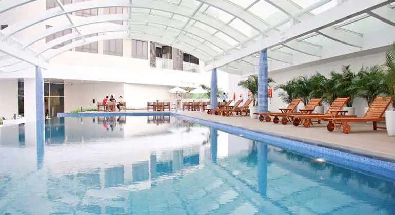 Hai bể bơi ngoài trời được bố trí trên tầng 5, với tầm nhìn toàn cảnh của tòa IPH và quang cảnh Thành phố Hà Nội. Bể bơi cũng được thiết kế để thích nghi với khí hậu của miền bắc và phong cách sống người Hà Nội, với mái che lượn sóng bao trùm toàn bộ DT 25m2 của bể, tạo điểm nhấn trang nhã lại có bóng mát quanh năm.