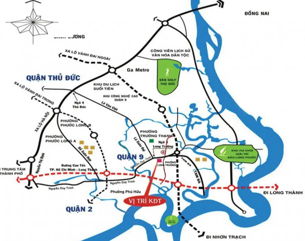 - Cách Khu công nghiệp Tân Cảng Phú Hữu - Cát Lái 1.5km đi theo đường Nguyễn Duy Trinh
