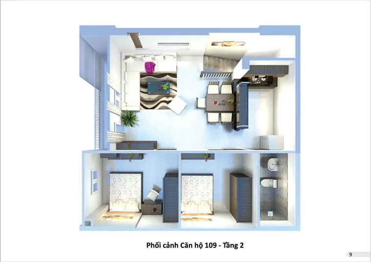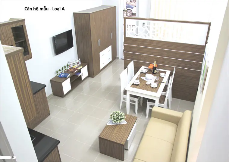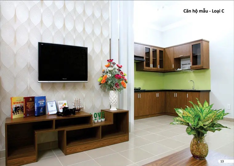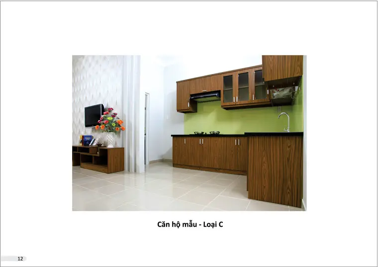 - Căn hộ hoàn thiện đến trần, giấy dán tường, không bao gồm nội thất. Mức độ hoàn thiện: sơn tường, trang trí giấy dán tường, lát gạch, lắp đặt thiết bị vệ sinh, điện, nước, cửa đi cửa gỗ công nghiệp, cửa sổ, cửa nhà vệ sinh cửa nhôm kính, hệ thống báo cháy, chữa cháy tự động, có hệ thống đường ống máy lạnh âm tường chờ sẵn, hệ thống ống hút mùi cho khu vực bếp chờ sẵn. Căn hộ tầng trệt còn có lát đá granite bậc cầu thang, lan can cầu thang sắt.