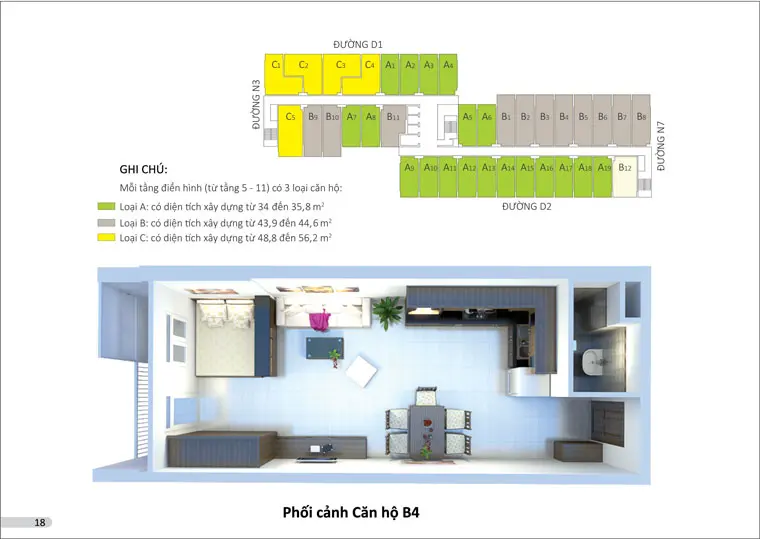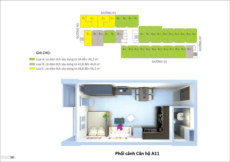 Mô tả bản vẽ thiết kế tổng thể mặt bằng và các loại diện tích căn hộ