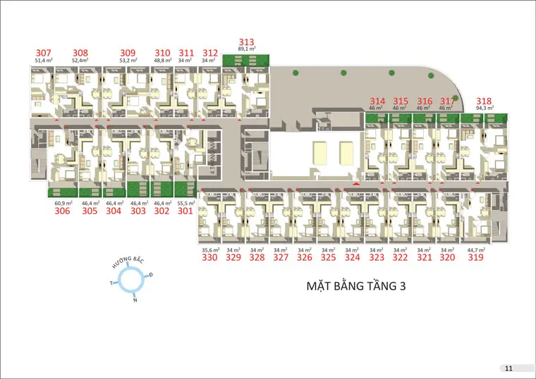 - Mô tả mặt bằng và chi tiết căn hộ. Khu dân cư Phú Hòa có 331 căn; trong đó: tầng 1&2: 13 căn; tầng 3 có 30 căn (trong đó có 14 căn có ban công rộng); tầng 4 có 36 căn (trong đó có 04 căn có ban công rộng), từ tầng 5 đến tầng 11 mỗi tầng có 36 căn hộ.
