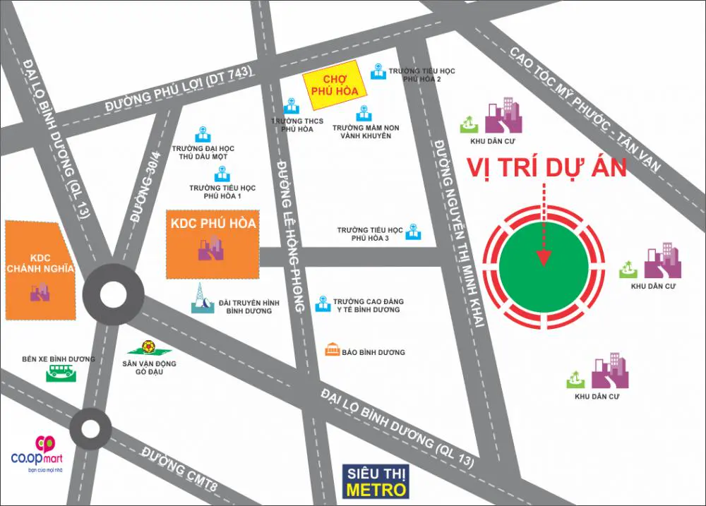 Khu dân cư Phú Hòa tọa lạc tại Phường Phú Hòa, TP. Thủ Dầu Một, tỉnh Bình Dương.