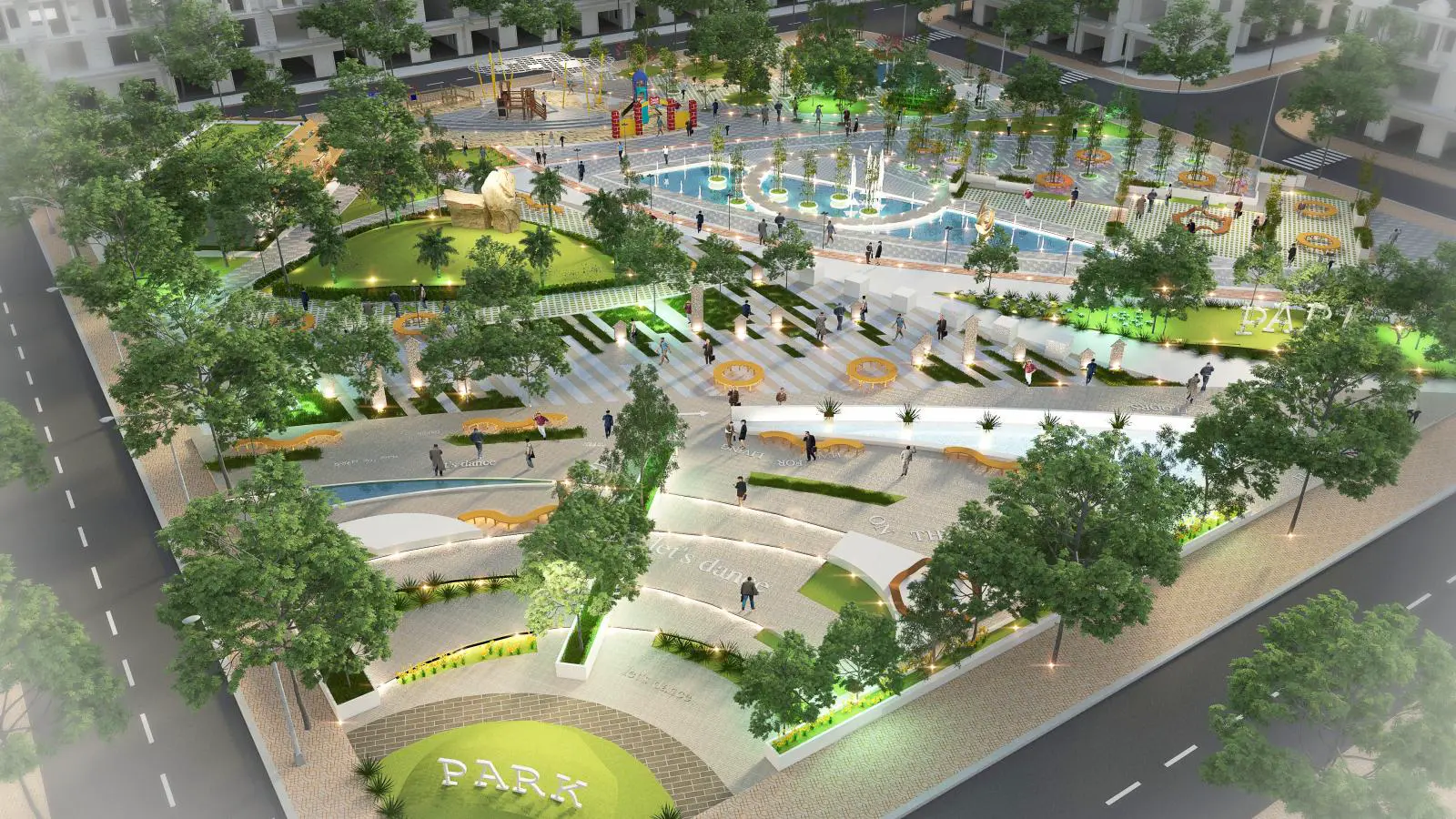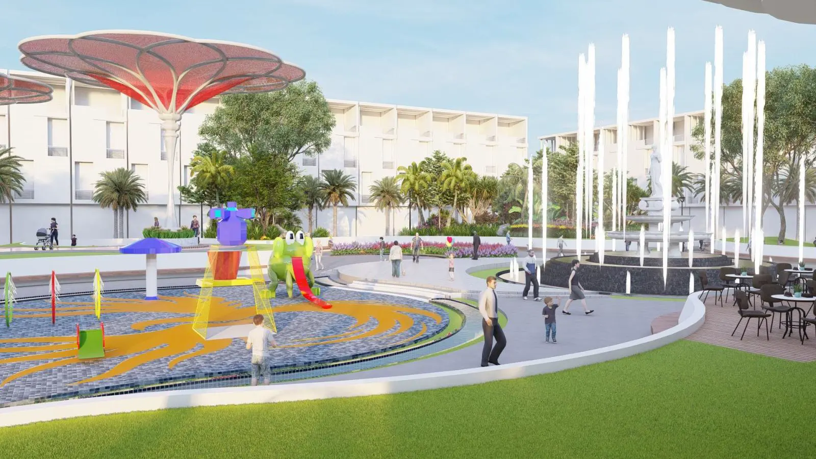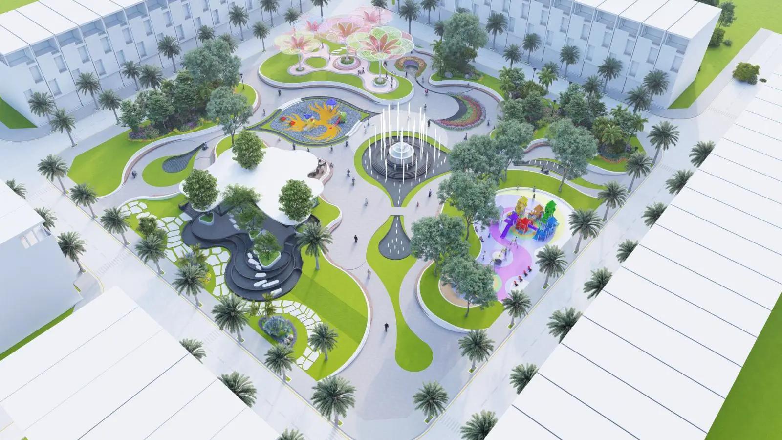 - Công viên trung tâm là khu vườn xanh mát, tổ hợp vui chơi giải trí dành cho mọi lứa tuổi
