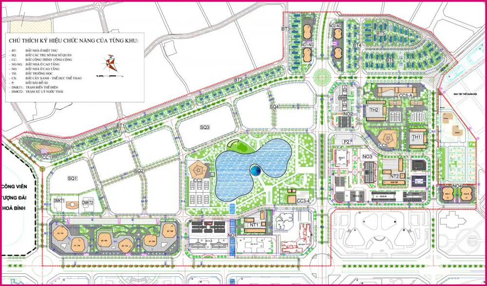 - Diện tích 135.103 m2 dành cho xây dựng các nhà cao tầng.