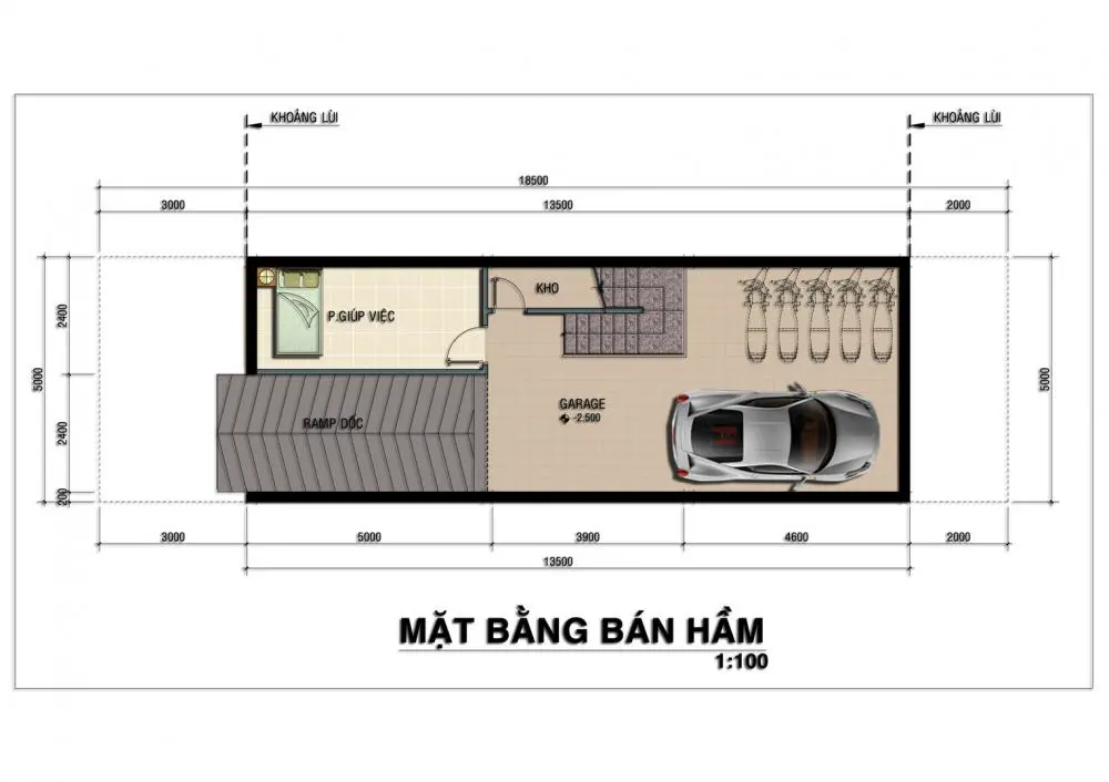 - Khu biệt thự có tổng diện tích 2.649,1m2, tầng cao 3 tầng (chưa kể sân thượng và hầm), gồm 3 căn.