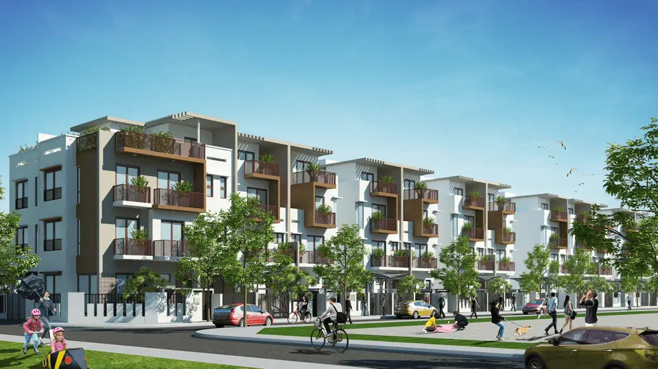 Khu thấp tầng như nhà phố, biệt thự cũng mang vẻ đẹp xanh tươi của thiên nhiên. Một yếu tố không thể thiếu trong hệ thực vật rừng là những con đường mang tên các loài hoa, góp phần làm nên sự phong phú của khu đô thị.