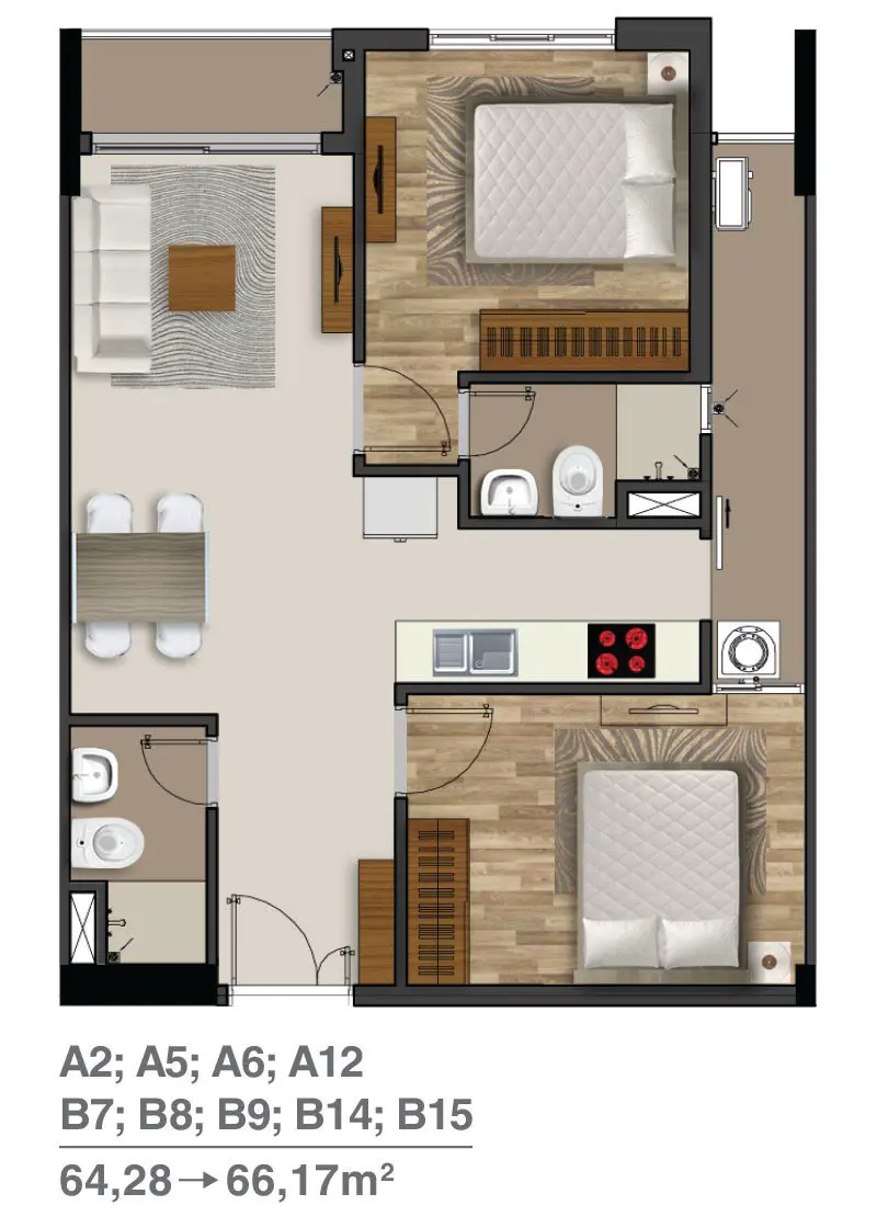 Các căn hộ tại dự án đều có thiết kế mở, tối ưu khả năng đón nắng, gió tự nhiên. Giúp cư dân có thể tận hưởng cuộc sống thoải mái, dễ chịu.